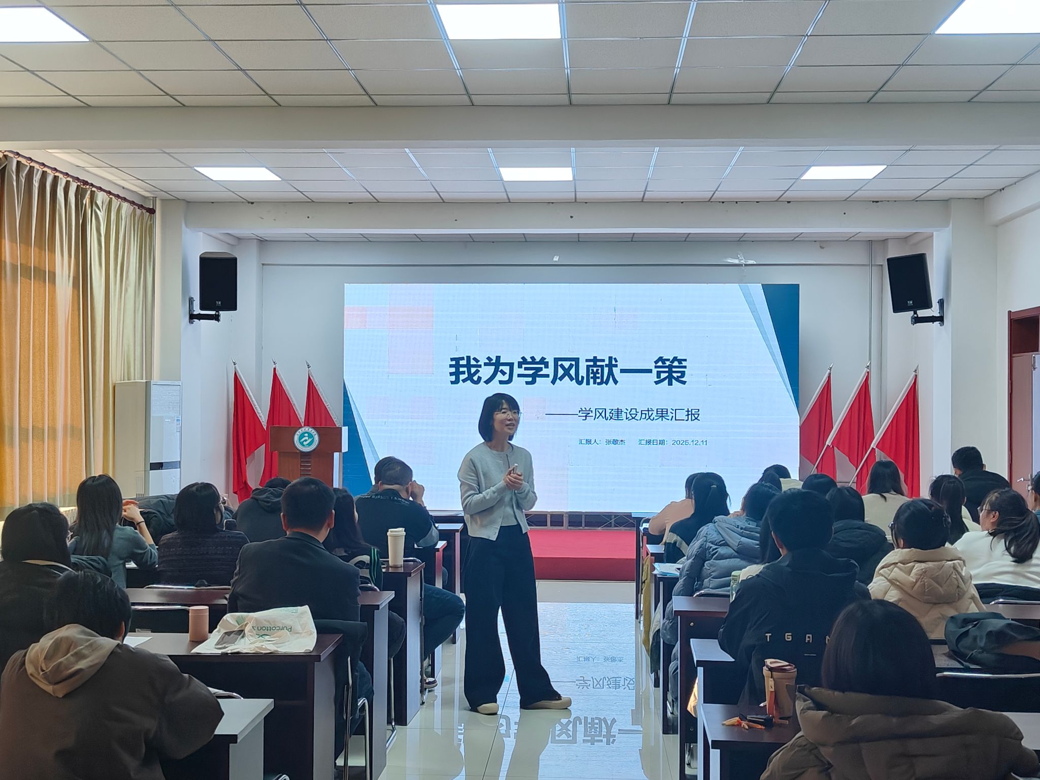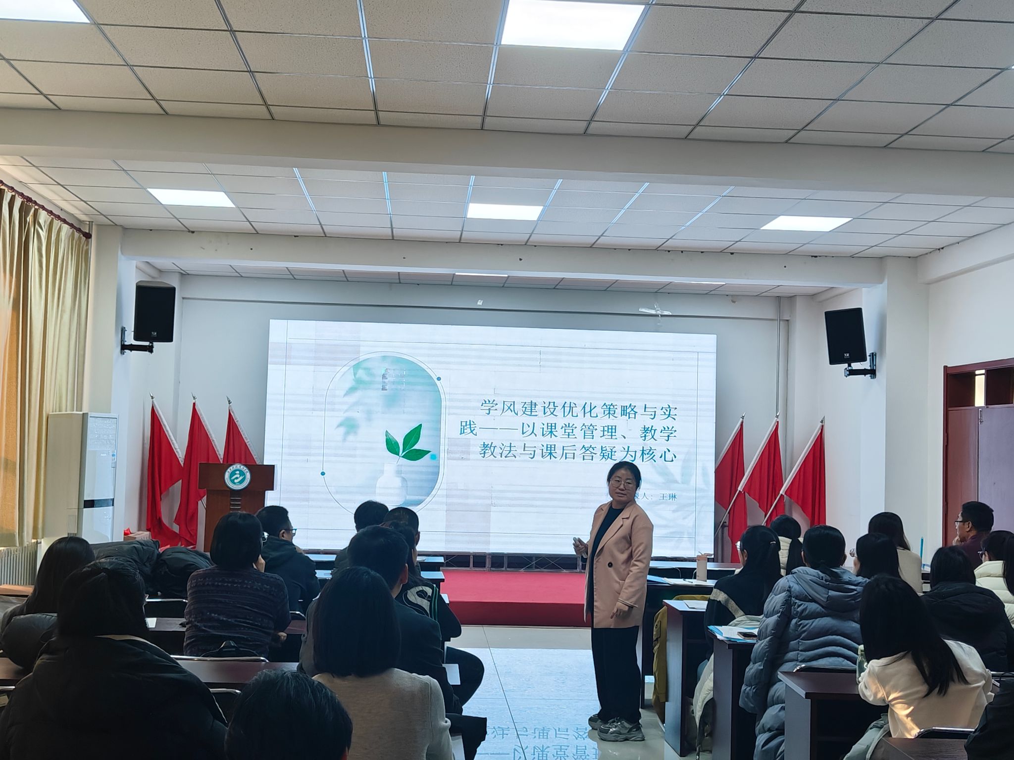 首先,基础部主任王侠强调,学风是一所大学的灵魂,是大学的立校之本。并就基础部学风建设,从深刻理解学风的内涵与重要性、系统规划基础部学风建设实施路径两个方面进行阐释。她指出,基础部作为公共课教学主阵地,教师教风直接影响学生对 “学习” 的认知,尤其是一年级学生,正处于学风养成关键期。她从紧扣学校办学定位、基础部学风建设聚焦基础学科与专业应用结合、构建基础部特色学风体系等方面给出了基础部推进学风建设的有效路径。